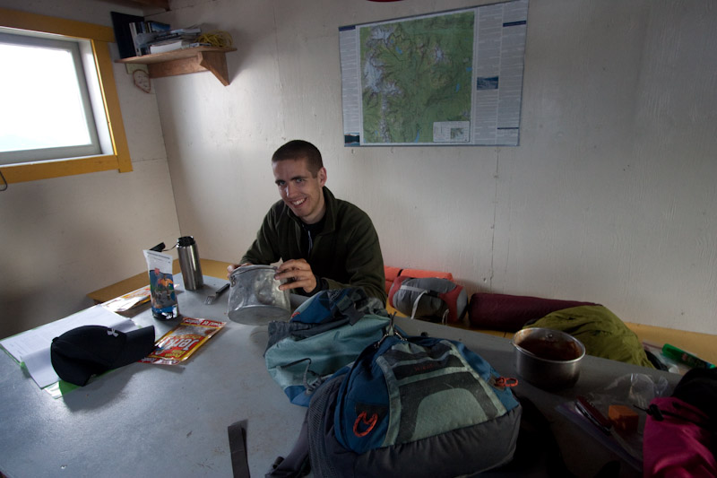 Soon after, not long before dark, we caught a glimpse of the hut. Man were we happy to not be stuck outside as we hadn’t brought a tent. Upon checking the logbook, we saw that the last entry was August 2nd. I’m starting to get the idea that Brew is more of a winter trip than summer.