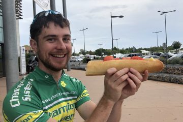 100.0km Distance 829m Elevation Went to decathlon again. Can’t remember if we found gas. More delicious sandwiches with baguette, manchego,…