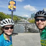 The road to Bilbao was fast. Smooth pavement, slightly downhill, no headwind. We arrived in Bilbao at 12:30 and first went to decathlon to get chain lube (my chain has started to show a slight bit of orange rust). We then went the 7km out of town to our hotel, Hotel Puerta de Bilbao (€73/night without breakfast). We checked in, were brought a bottle of champagne and chocolates for our honeymoon, and napped, cleaned our clothes, and lounged by the pool.