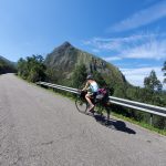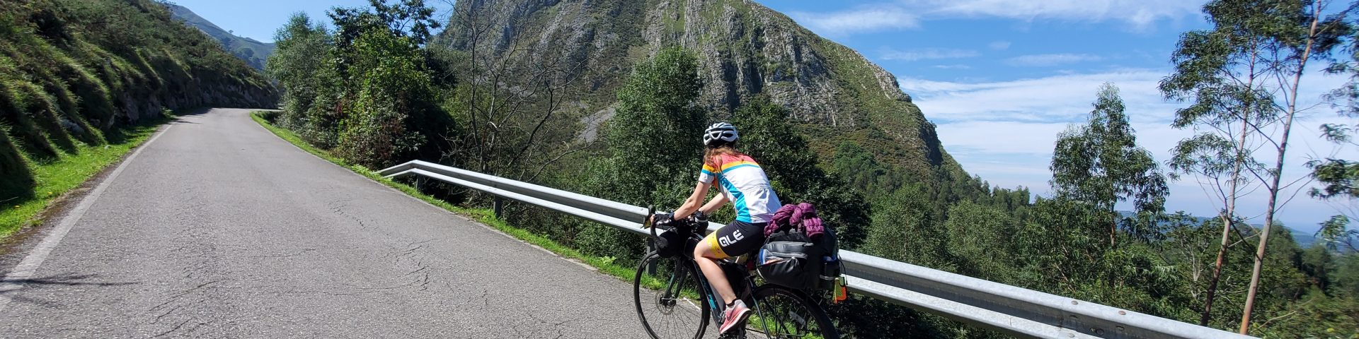 After an already hilly day, we then began two big climbs as we entered Picos de Europa, one around 350m and one around 250m. I cycled the last bit of one twice, since I started chatting with another cyclist, Jose Antonio from Llanes, and then cycled back down to rejoin Viki. There were cows in the middle of the road and many sharp bends, so important to stay mindful while riding!