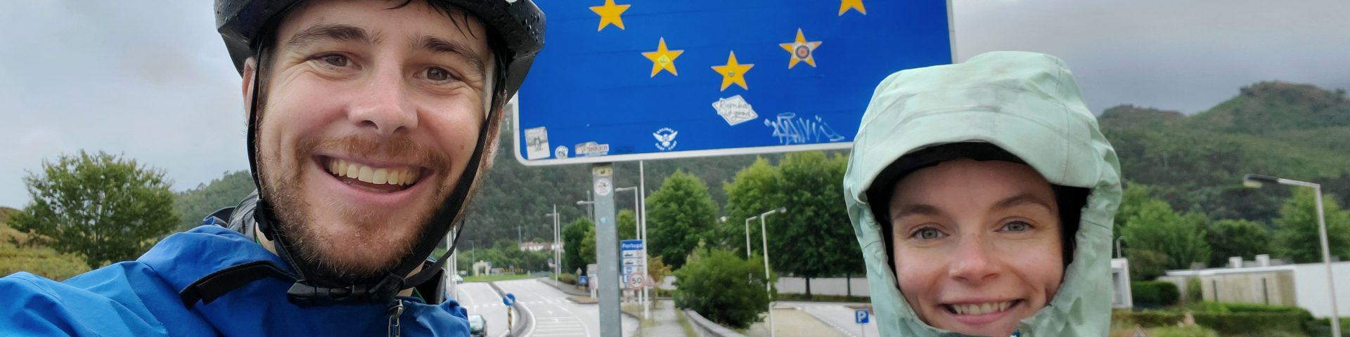 At around 40km we arrived in Portugal, as we crossed the river Minho. A few rays of sun shone through the clouds, and we thought it signaled good weather to come in our future. As we arrived at the ocean, beginning our journey south, we then encountered headwind for the next 50km and we crawled along at 10-12km/h.