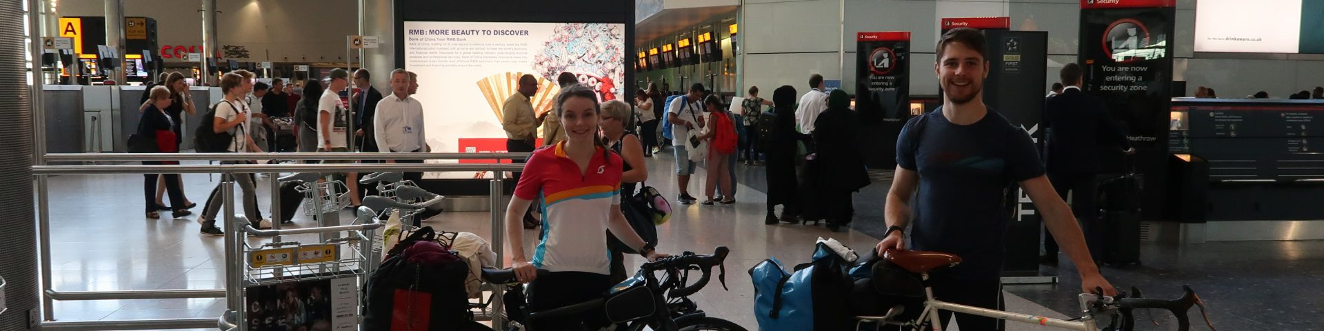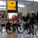 We’ve finally set off from London! Catching the 3:55pm Heathrow Express, we got the last train on which bicycles are allowed to the airport.