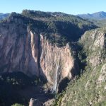 From Creel, it was another three hour drive along terribly windy roads that were fortunately quite quiet. Eventually we arrived at the waterfall. This is the highest full-time waterfall in Mexico. We spent an hour or so walking around to the various viewpoints and then returned to the van to read our books. We had another dinner in the van setting up our camp table inside as it was very cold outside, and were fortunate to have running water at the car park – surprising given how remote it is.