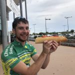 The second half of the day was smooth sailing. Shortly after lunch we showered, using the water refill station of an RV campground. Further along the way we sampled some grapes from a vineyard that we passed, which were sweet and tasty. Viki was particularly excited to see flamingos in the water at one point. We finished up at 115km, near a town called Pignan (15km from Montpellier). It may be one of the worst campsites we’ve ever stayed in, just downstream from a wastewater treatment plant, with dogs from a dog kennel howling not far away, a bunch of tipped refuse in the near vicinity, an empty shotgun casing, and an actual gunshot shortly before bed. Luckily (or not, you’ll find out tomorrow), it’s secluded and private.