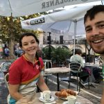 In Villanova we found a field to sleep in and asked a resident of the opposing apartment block whether it would be okay. Then five different residents all got out onto their balconies and discussed animatedly. One man brought us cookies and chocolates from a fancy chocolate shop. One lady, Patricia, let us camp in her small garden plot behind the apartments. We went off to have dinner at a nearby pizzeria and had a nice dinner. We also chatted with a friendly French couple who asked about our travels and invited us to stay with them in their house nearby, even going so far as to offer to drive us and our bikes the 6km. Now we’re all set up in the tent and ready for sleep