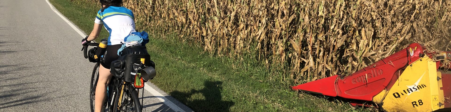 Much of the afternoon was spent biking through farmland, mostly apples and corn. One friendly tree was kind enough to bestow on Viki two apples to have as an afternoon snack. This was later followed with Gelato.